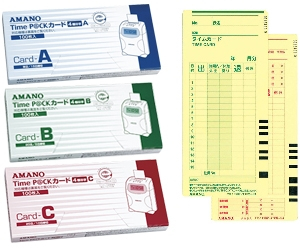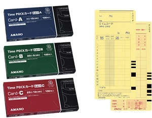 古紙・植物油使用のエコマーク認定タイムカードです。Time P@CK(6欄印字)カードA(15日/月末締用)、カードB(5日/20日締用)、カードC(10日/25日締用) |