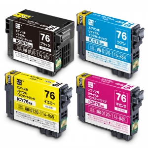 使用済みインクカートリッジを回収し再利用した商品です。カートリッジは再利用を行い独自開発のインクを充填しております。 ECI-E76B ECI-E76C ECI-E76M ECI-E76Y |