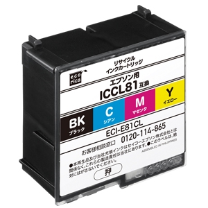 使用済みインクカートリッジを回収し再利用した商品です。カートリッジは再利用を行い独自開発のインクを充填しております。 ECI-E81CL |