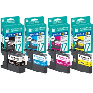 使用済みインクカートリッジを回収し再利用した商品です。カートリッジは再利用を行い独自開発のインクを充填しております。 ECI-BR17B、ECI-BR17C、ECI-BR17M、ECI-BR17Y |
