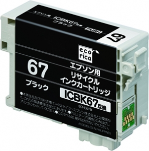 使用済みインクカートリッジを回収し再利用した商品です。カートリッジは再利用を行い独自開発のインクを充填しております。 ECI-E67B |