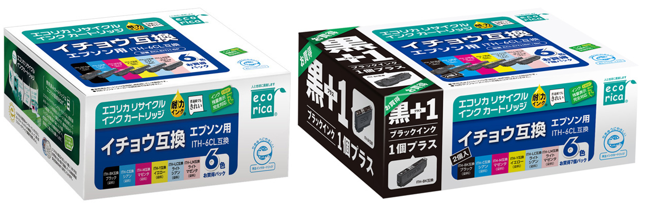 使用済みインクカートリッジを回収し再利用した商品です。カートリッジは再利用を行い独自開発のインクを充填しております。 ECI-EITH-6P、ECI-EITH6P+BK ECH-EITH-6P |