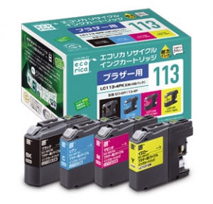 使用済みインクカートリッジを回収し再利用した商品です。カートリッジは再利用を行い独自開発のインクを充填しております。 ECI-BR113-4P ECI-BR113B、ECI-BR113C、ECI-BR113M、ECI-BR113Y |