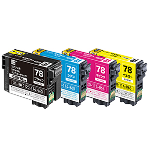 使用済みインクカートリッジを回収し再利用した商品です。カートリッジは再利用を行い独自開発のインクを充填しております。 ECI-E78B、ECI-E78C、ECI-E78M、ECI-E78Y |