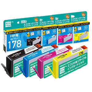 使用済みインクカートリッジを回収し再利用した商品です。カートリッジは再利用を行い独自開発のインクを充填しております。 ECI-HP178B-V、ECI-HP178C-V、ECI-HP178M-V、ECI-HP178Y-V |