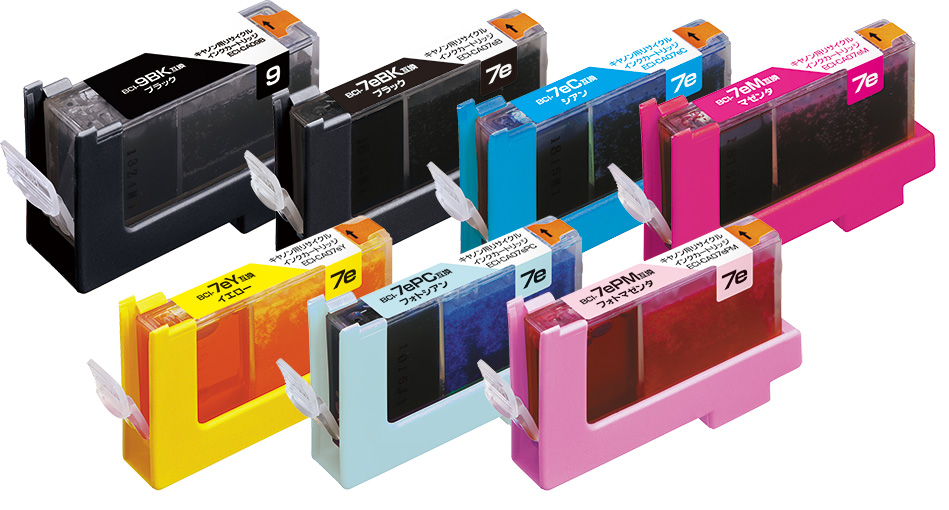 使用済みインクカートリッジを回収し再利用した商品です。カートリッジは再利用を行い独自開発のインクを充填しております。 ECI-ESAT-B、ECI-ESAT-C、ECI-ESAT-M、ECI-ESAT-Y、ECI-ESAT-LC、ECI-ESAT-LM、ECI-ESATB-2P ESP-ESAT-B、ESP-ESAT-C、ESP-ESAT-M、ESP-ESAT-Y、ESP-ESAT-LC、ESP-ESAT-LM |