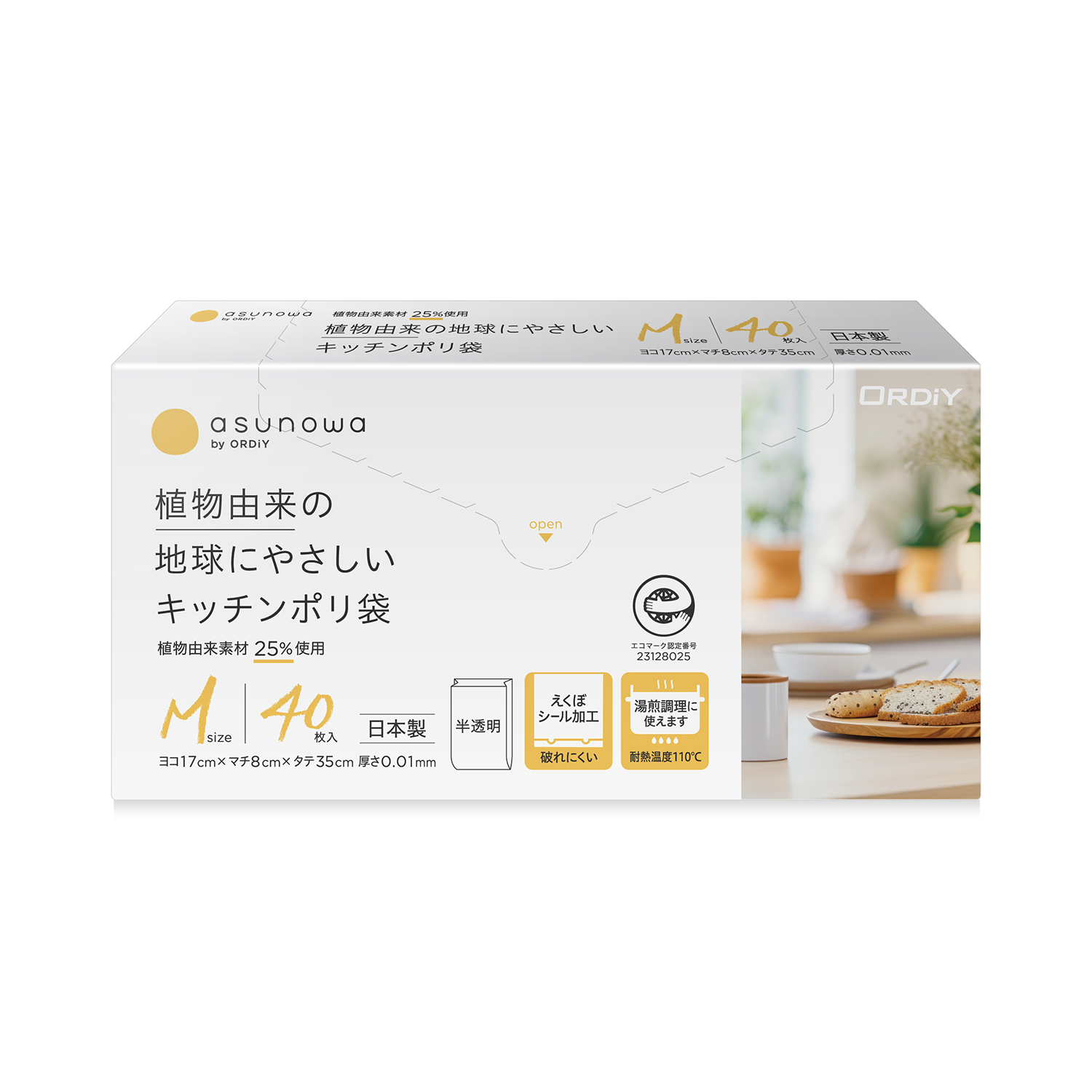 温暖化対策として植物由来素材を25%使用したシャカシャカタイプのキッチンポリ袋(環境負荷低減商品) |