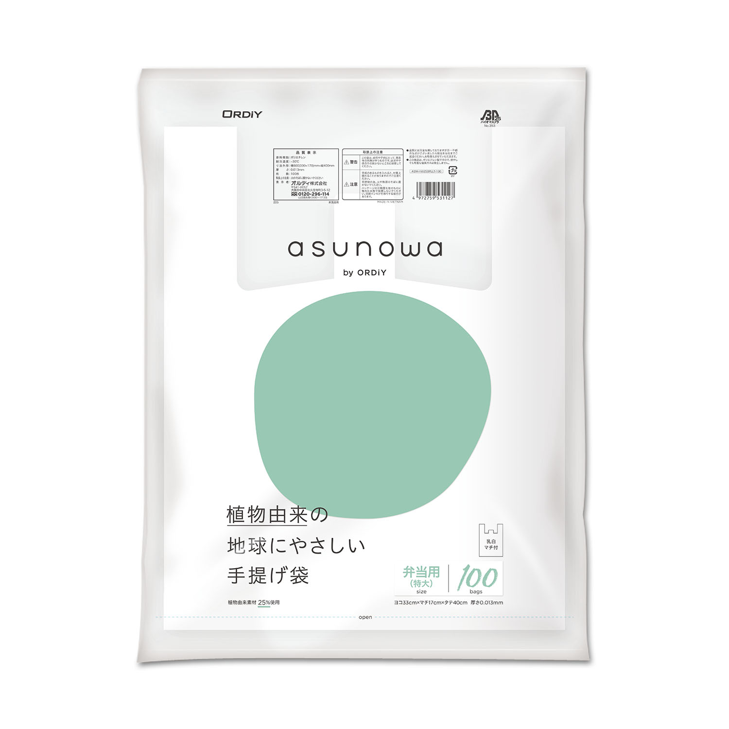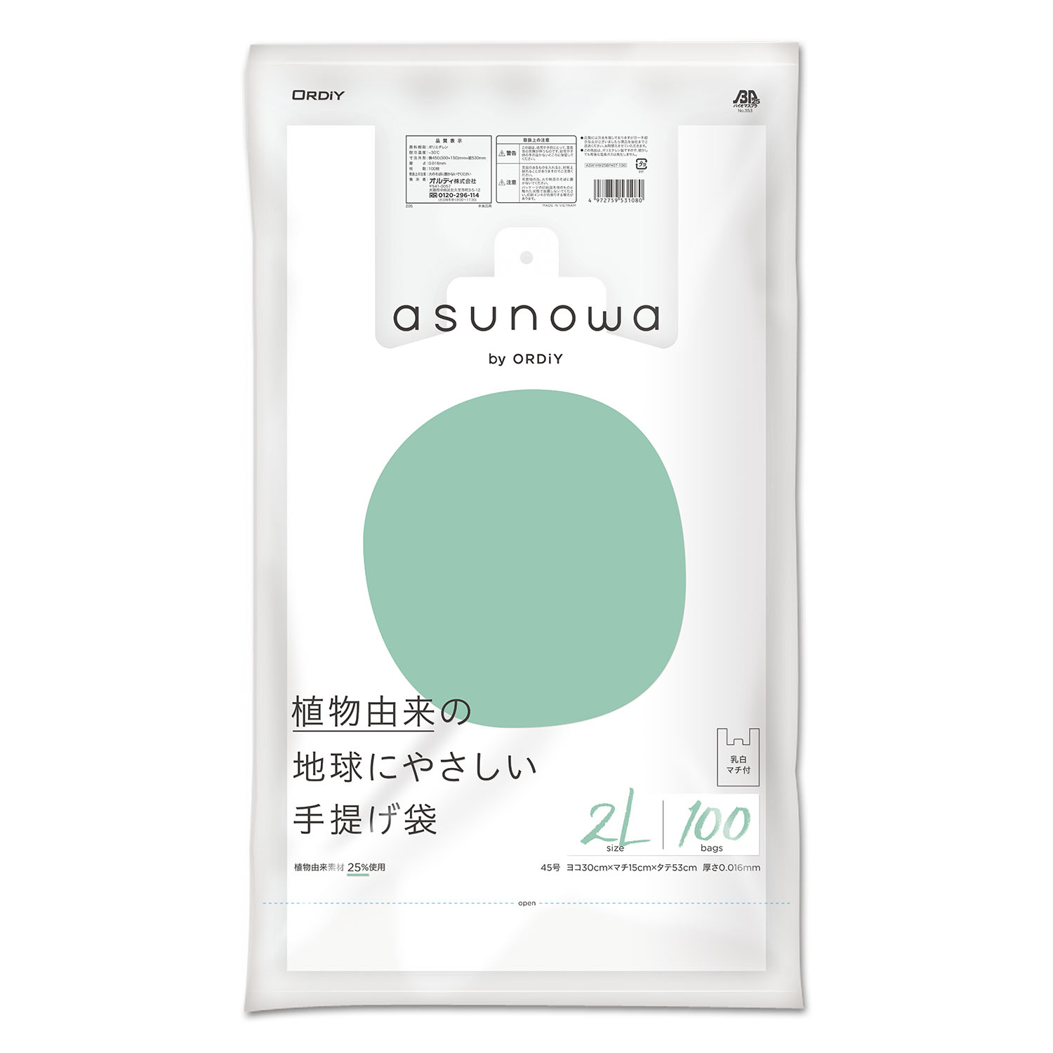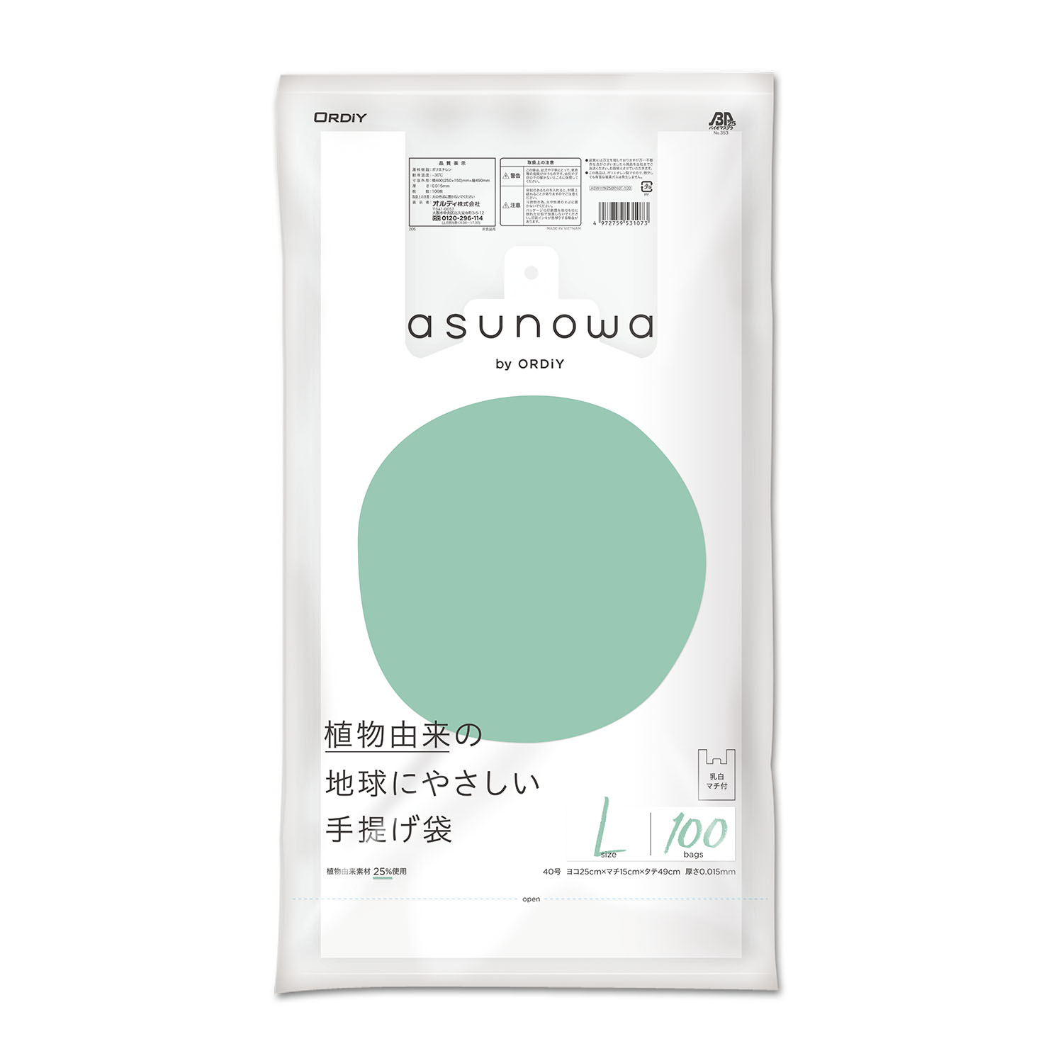 植物由来原料25%使用。バイオマスプラ認定商品 |