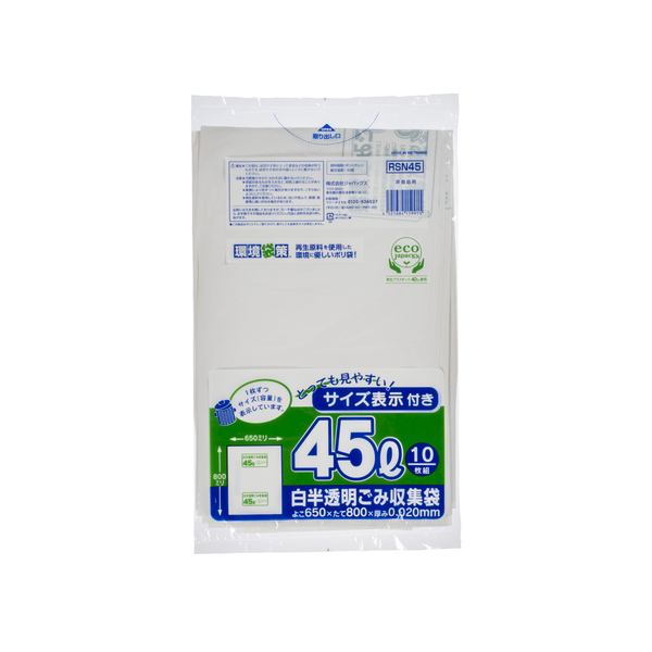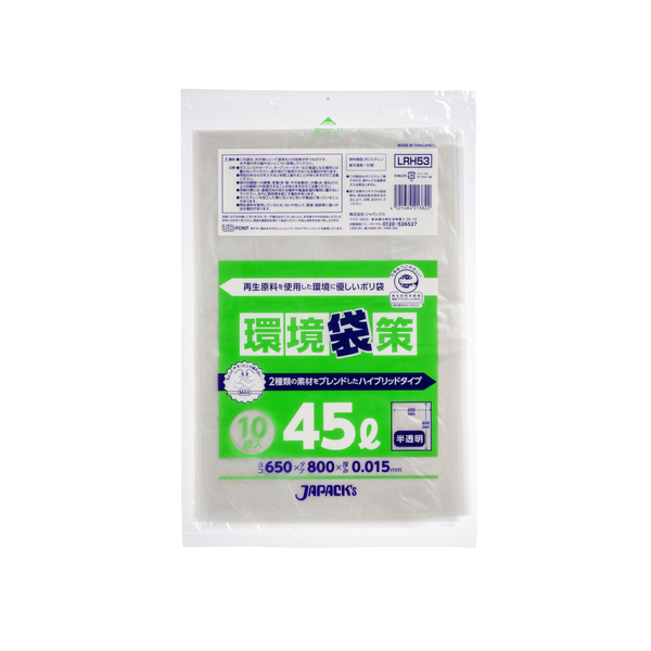 エコマーク取得商品。再生プラスチックを40%使用した環境に配慮したポリ袋。 |