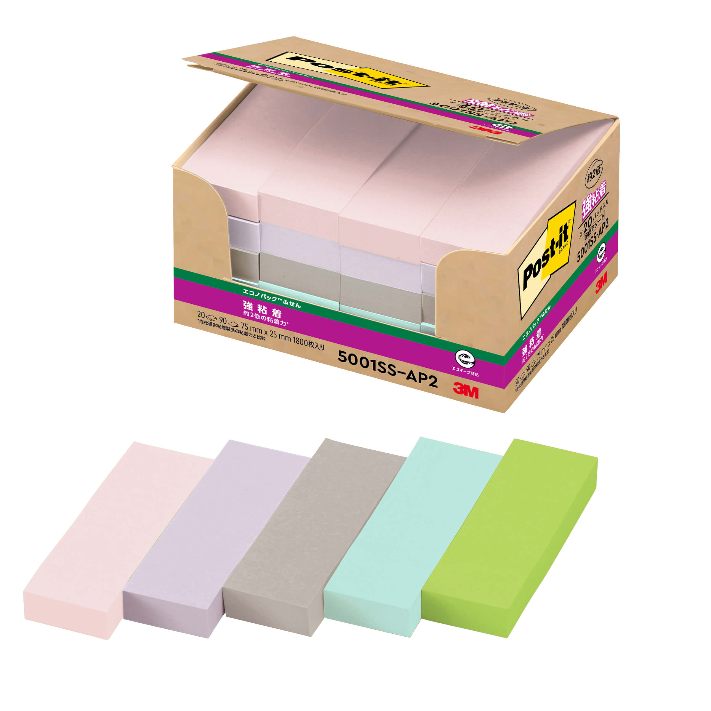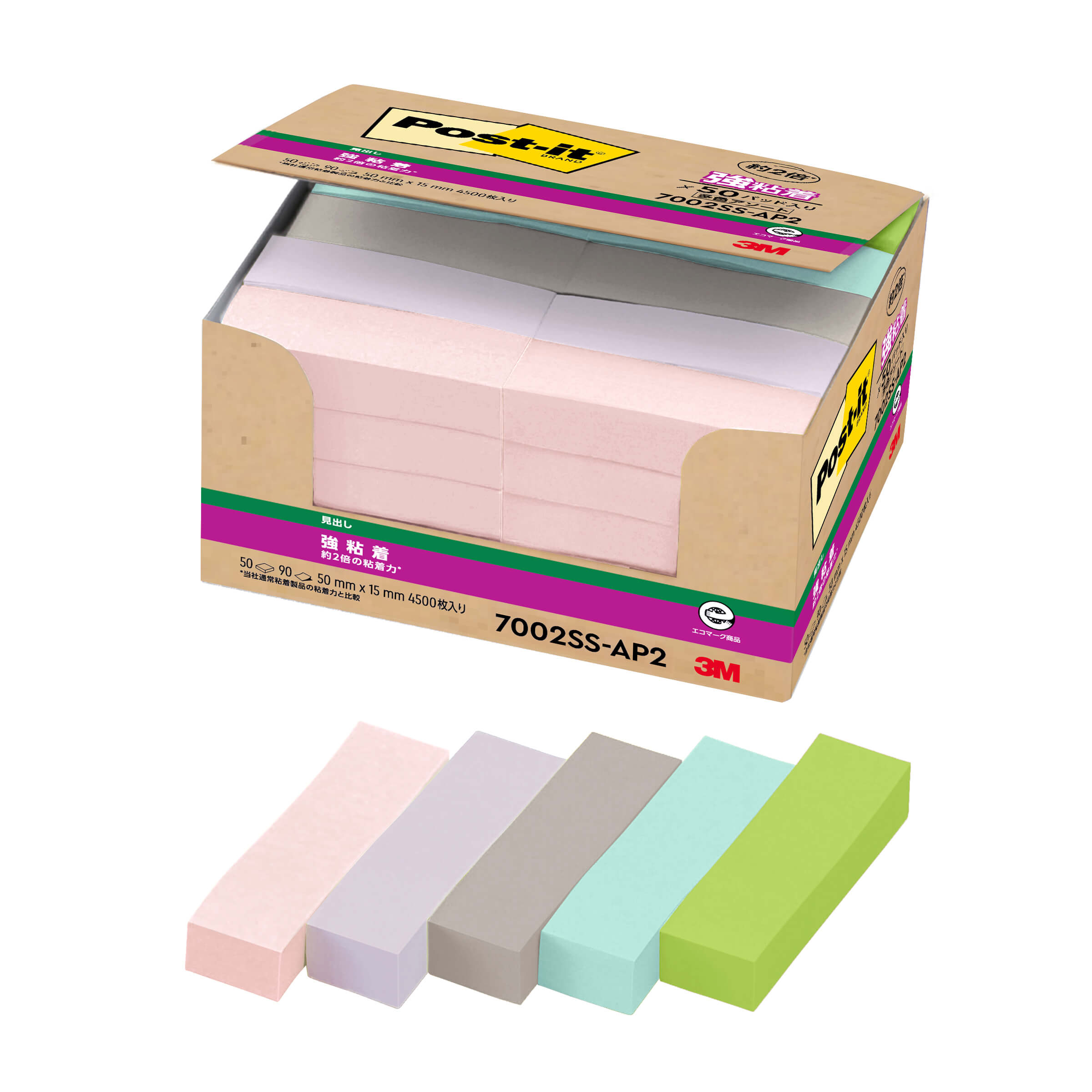 大気中に蒸発する有機溶剤を粘着剤から排除。替芯にプラスチック素材を不使用。 |