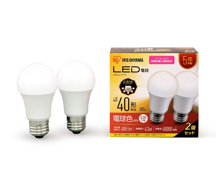 LED電球 E26 広配光 40形相当 電球色 2個セット LDA4L-G-4T72P
