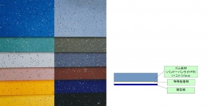 国内唯一の鉄道車両用難燃性長尺ゴム床材メーカーとして、難燃性・低発煙性・低毒ガス性・意匠性に優れるだけでなく、環境面や健康面の問題を解決すべくゴム床材の裏面に粘着剤を塗布した新製品となります。 床材の貼り付け時に有機溶剤系接着剤を使用しないため、揮発性有機化合物(VOC)の発生はありません。そのため地球環境にやさしく、防毒マスクが不要で人にやさしく、施工がしやすい製品です。 |