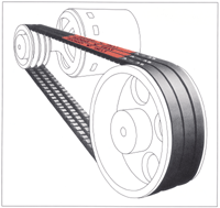 伝動能力が極めて高い上に高速運転にも適しベルト速度が40m/sまで使用できる当社の細幅Vベルト "パワーエース"の省エネ仕様です。電気使用量やCO2排出量の削減と装置のコンパクト化が図れます。 |