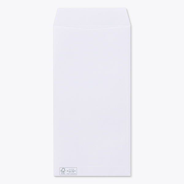 FSC(R)認証紙を使用した製品です。 窓部分にグラシン紙を使用。 封筒の裏面にマーク印刷済み。 |